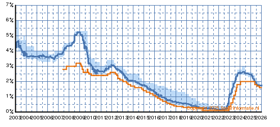 Het rente verloop van het spaarproduct "Rabo Beheerd Schenken (Voorheen GeneratieSparenPlus)" wordt in onderstaande grafiek aangegeven met de oranje lijn, de huidige rente is 1.60%. Het lichtblauwe gebied met de donkerblauwe lijn geeft de hoogste, laagste en gemiddelde rente weer van de Top-10 vergelijkbare spaarrekeningen.